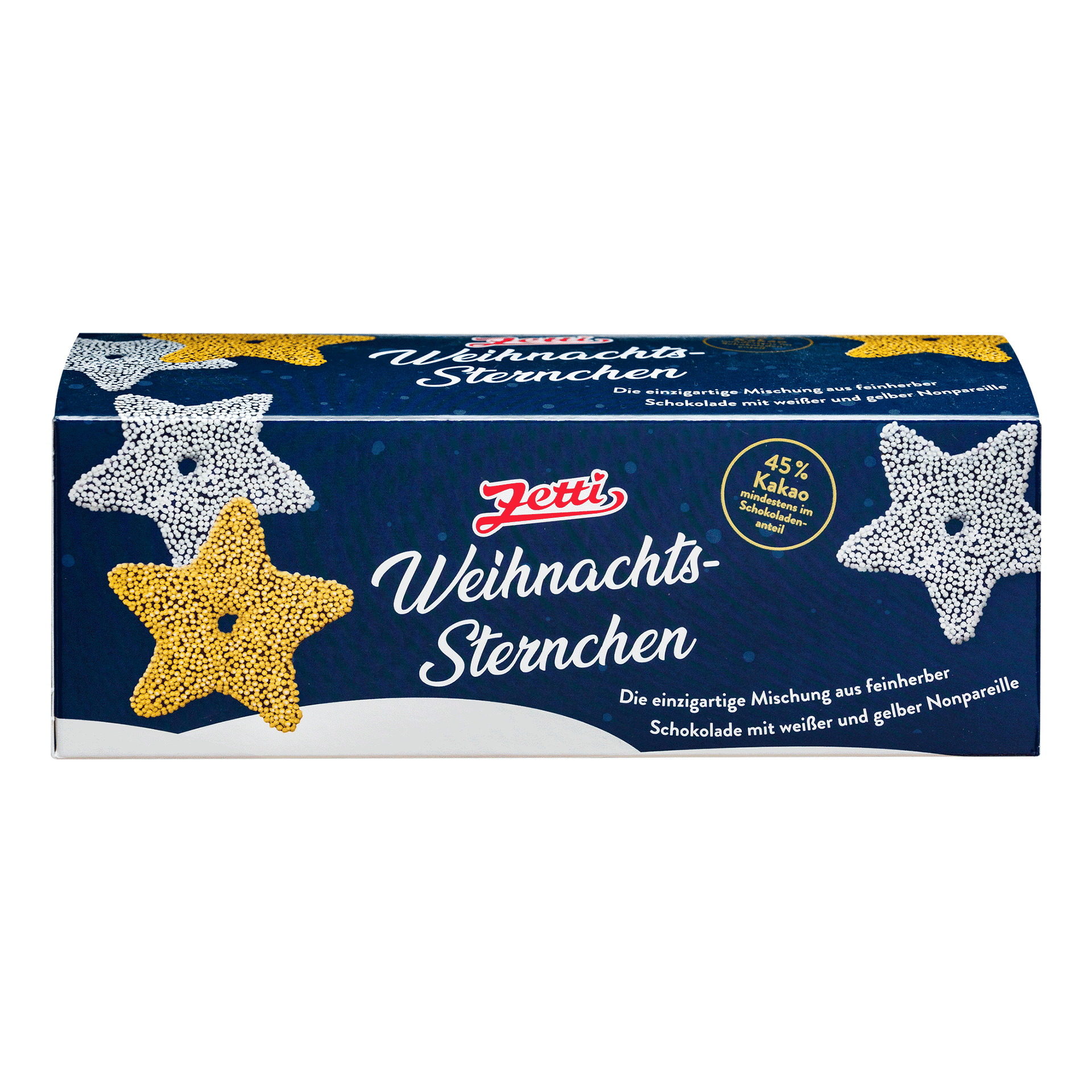 Zucker, Kakaomasse, Nonpareille (Zucker, Weizenstärke, Maisstärke, Gukosesirup, pflanzliche Öle (Kokos, Raps), Überzugsmittel: Bienenwachs weiß; Farbstoff: E 120), Kakaopulver, Kakaobutter, Emulgator: Sojalecithine; Vanillin. Kakao: 45% mind. im Schokoladenanteil. Kann Spuren von Schalenfrüchten, Erdnüssen, anderem glutenhaltigen Getreide, Ei und Milch enthalten.
