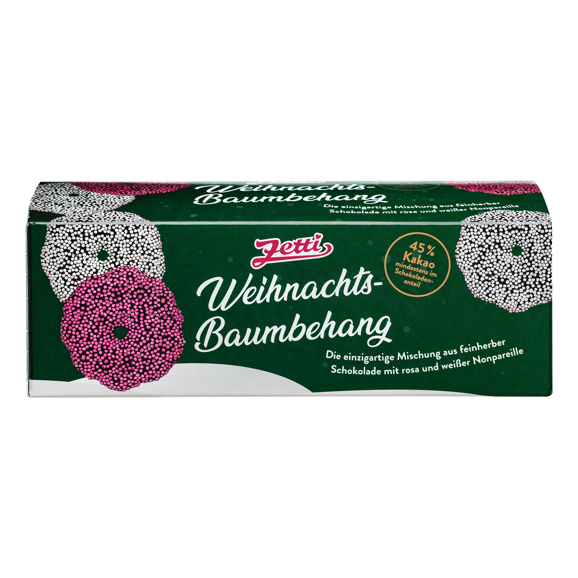 Zucker, Kakaomasse, Nonpareille (Zucker, Weizenstärke, Maisstärke, Gukosesirup, pflanzliche Öle (Kokos, Raps), Überzugsmittel: Schellack; Farbstoffe: E 100, E 172), Kakaopulver, Kakaobutter, Emulgator: Sojalecithine; Vanillin. Kakao: 45% mind. im Schokoladenanteil. Kann Spuren von Schalenfrüchten, Erdnüssen, anderem glutenhaltigen Getreide, Ei und Milch enthalten.