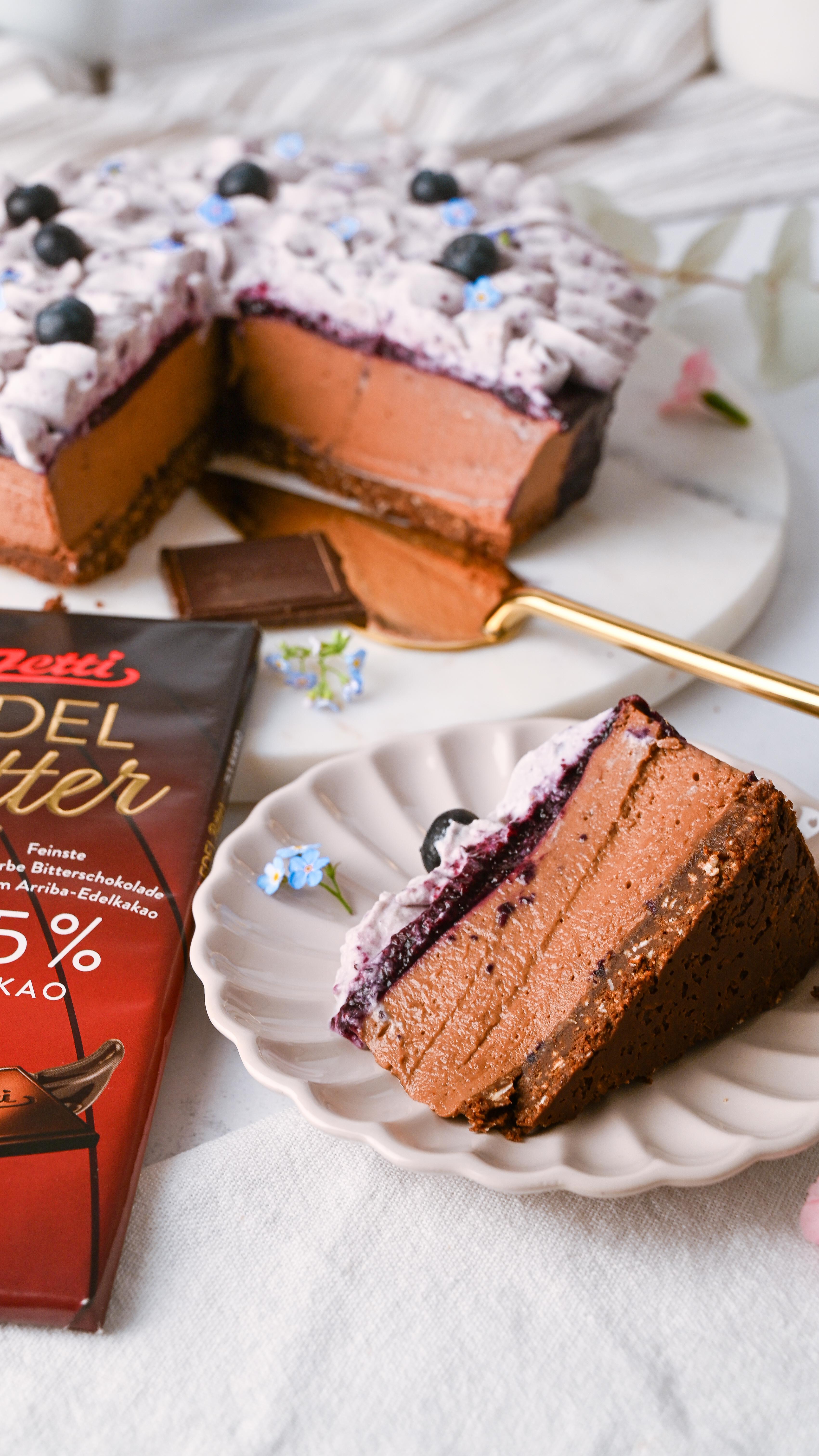Eine super leckere Kombination aus Schokolade und fruchtigen Blaubeeren. Und das Beste ist, ihr braucht den Ofen nicht anschalten. Perfekt für heiße Sommertage. Die herbe Edelbitterschokolade mit 75% Kakao gibt dem Ganzen einen besonders schokoladigen Geschmack.