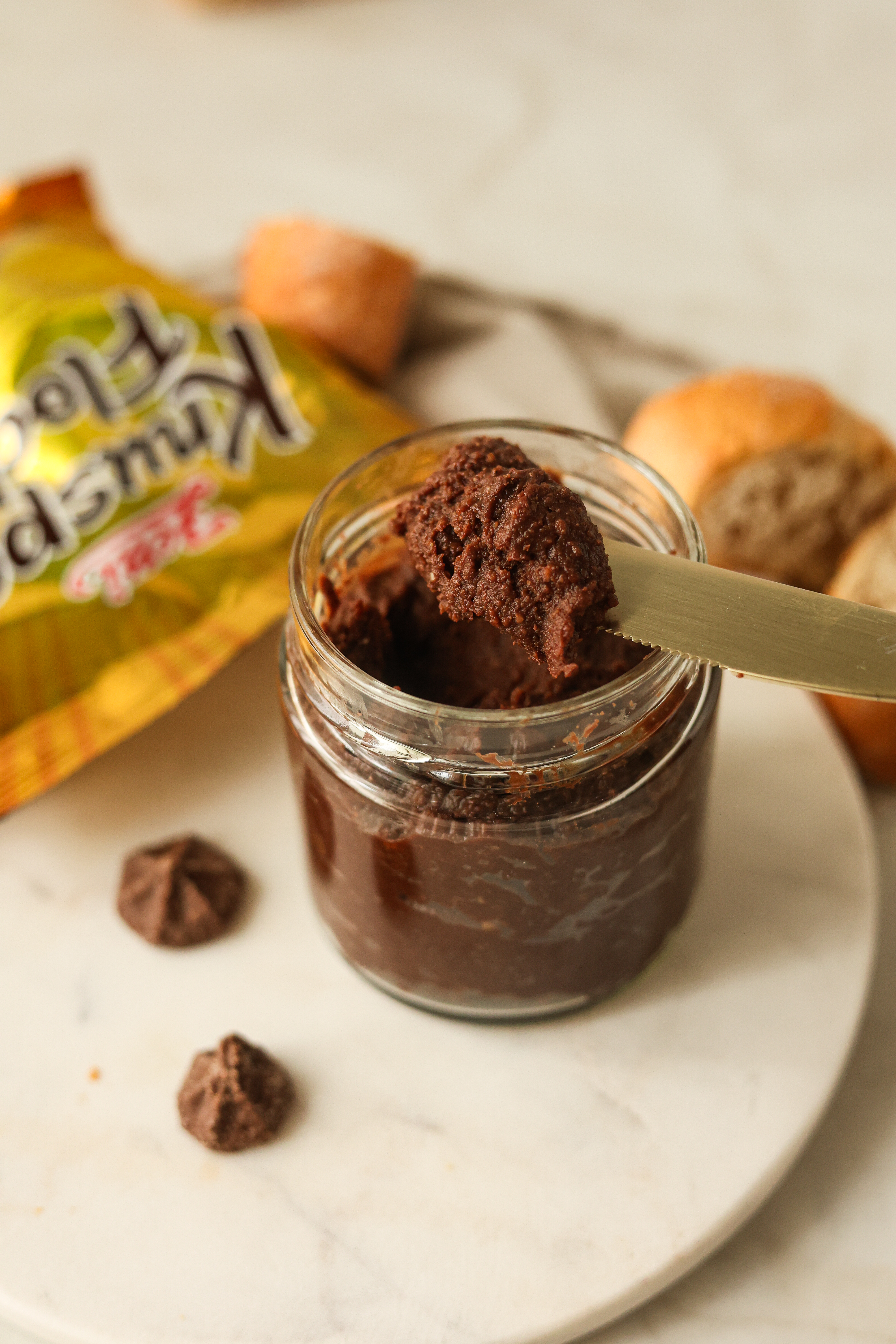 Super schokoladiger Brotaufstrich. Cremig, nussig & mit extra Crunch! Mit Knusperflocken Klassik und Edelbitter 58 % einfach anders lecker.