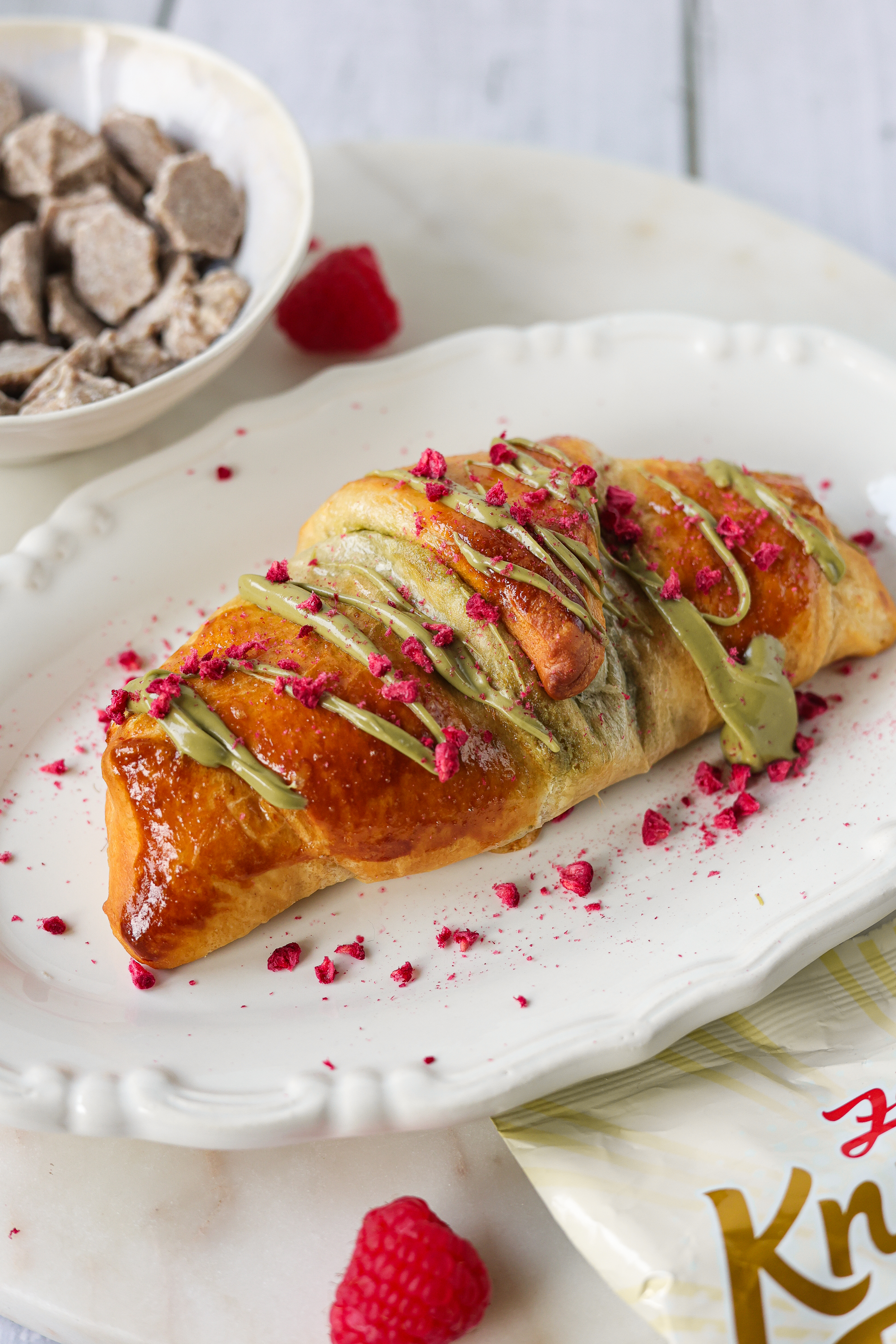 Ich habe euch heute ein ganz besonderes Pistazien Croissant mitgebracht. 🥐 Mein Croissant ist neben der Pistaziencreme mit frischen Himbeeren und den köstlichen weißen Knusperflocken gefüllt! Eine traumhaft gute Kombination.