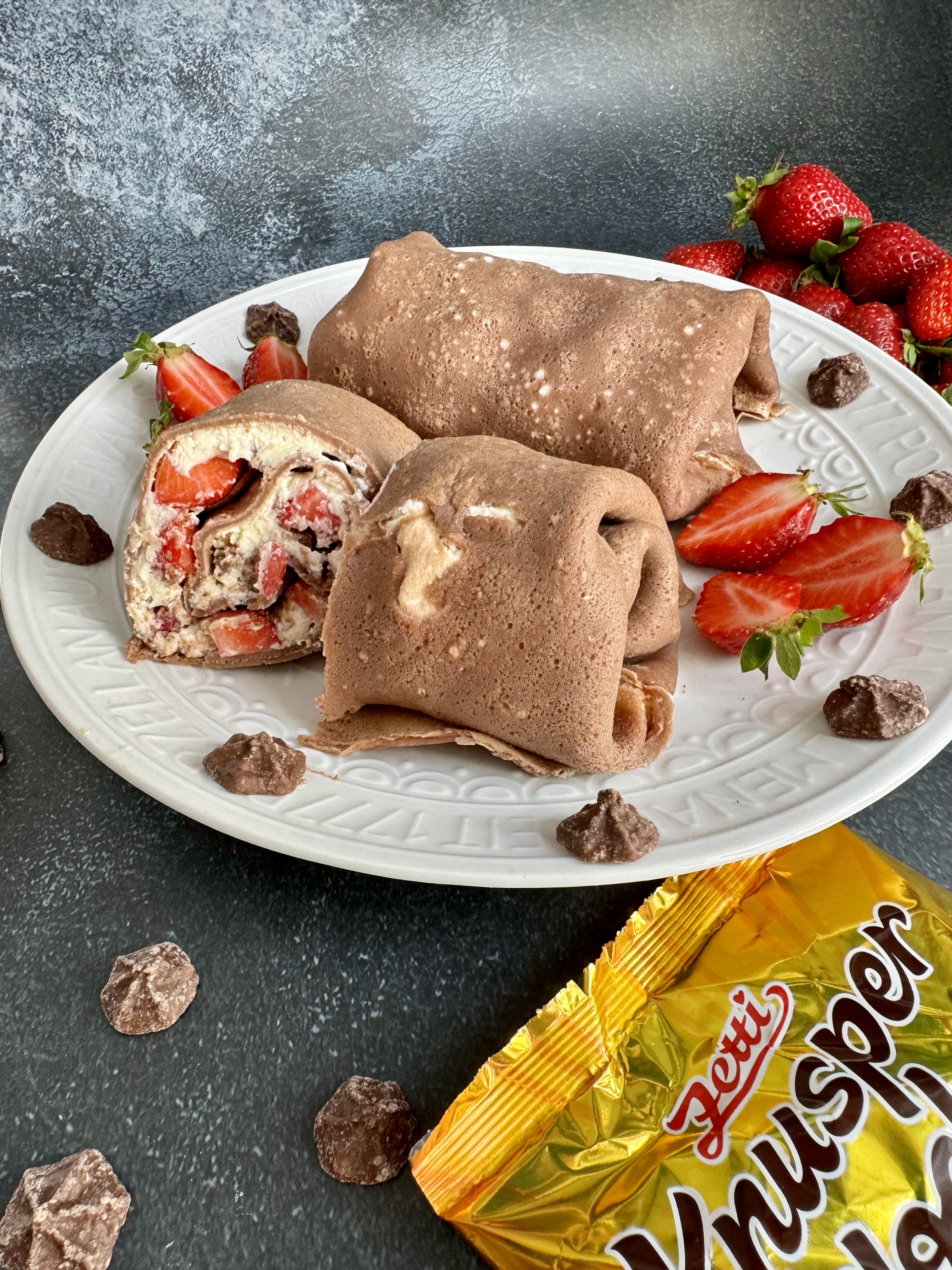 Schoko Burrito mit frischen Erdbeeren
