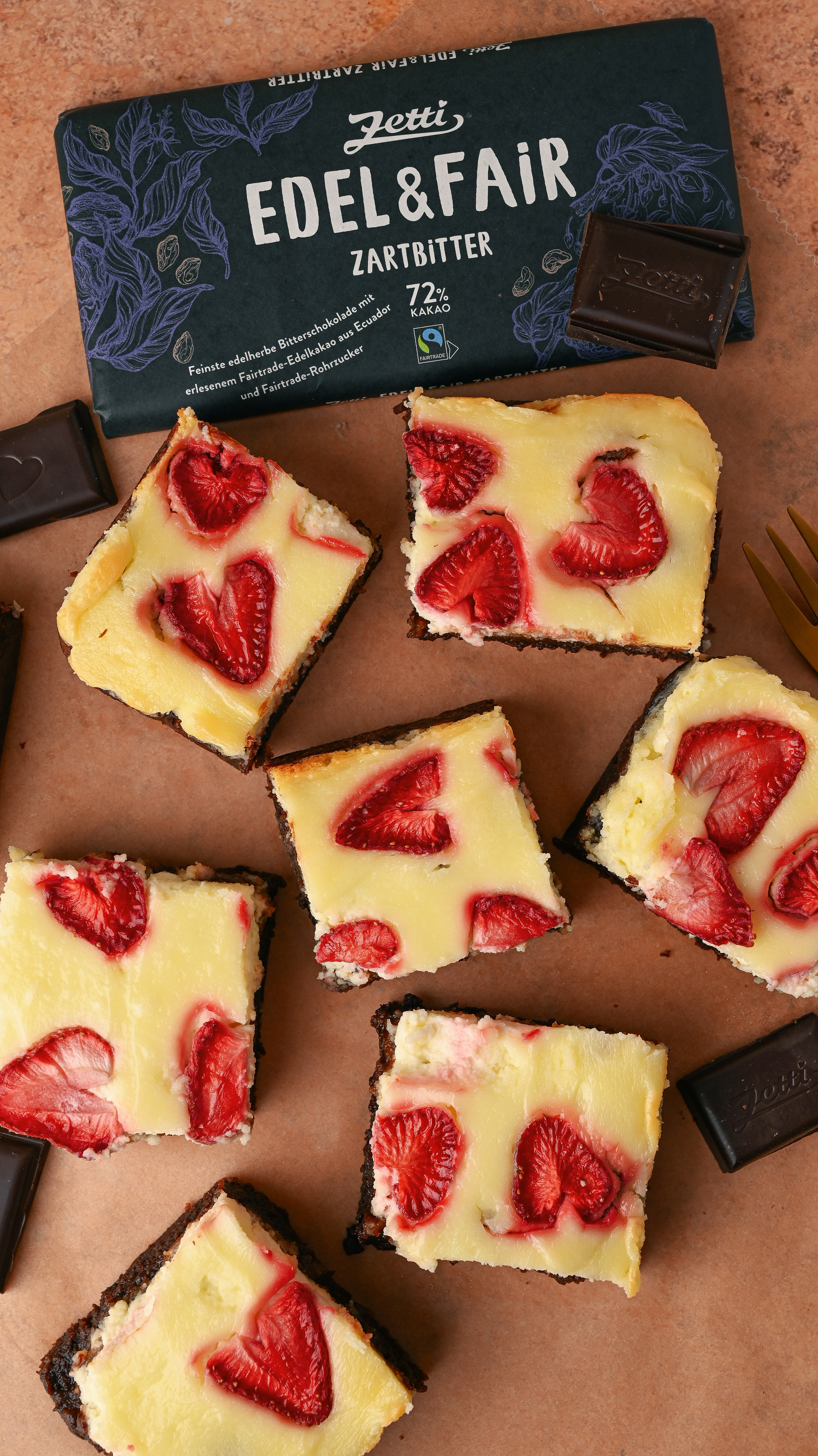 Aufgepasst an alle Erdbeerliebhaber: Wir haben dieses unglaublich leckere und einfach Strawberry Cheesecake Brownie Rezept mit der Edel & Fair Zartbitter für euch. Probiert’s unbedingt aus!